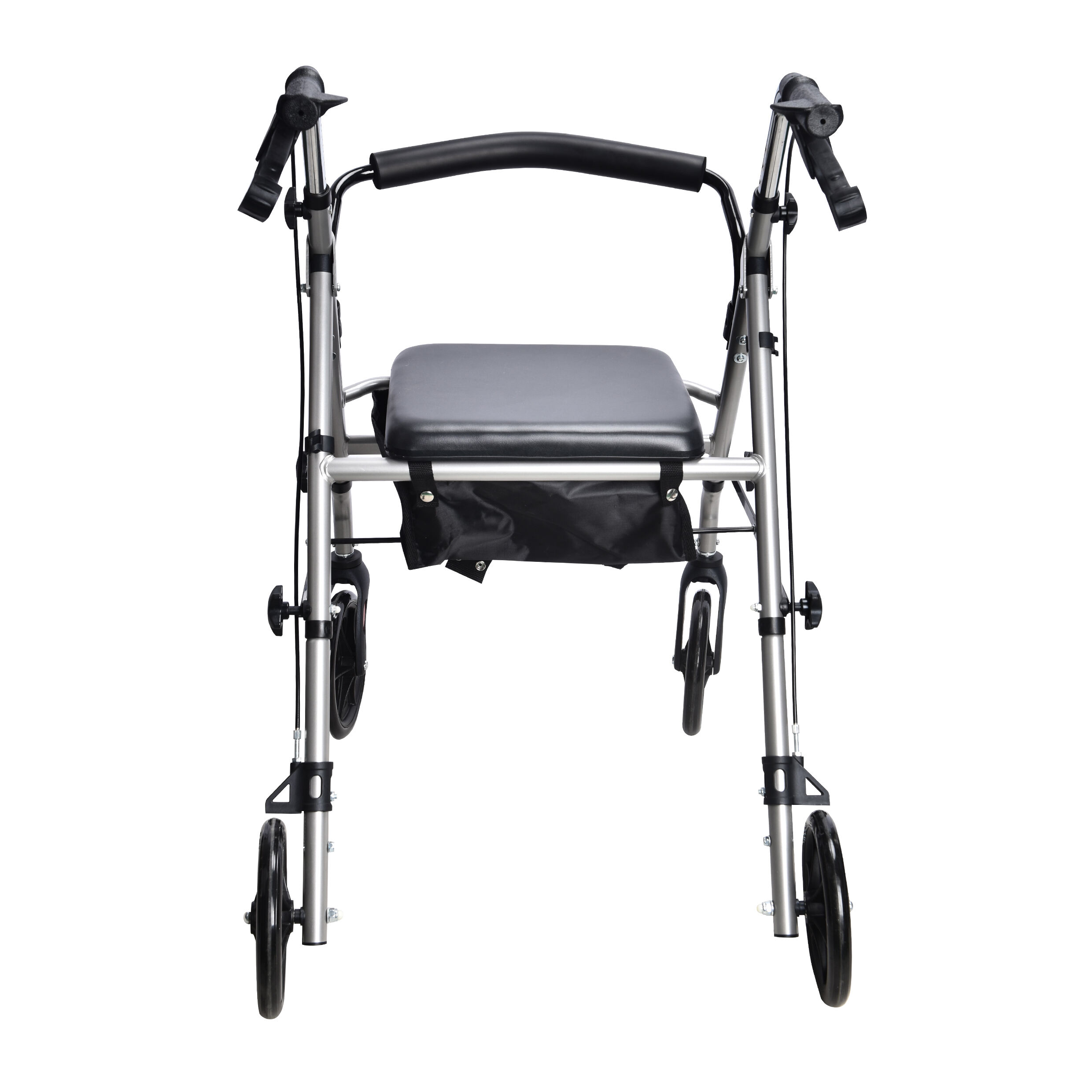 Trwałe urządzenie wspomagające mobilność dla osób starszych oraz ośrodków rehabilitacyjnych, wyposażone w regulowane rączki, podwójny system hamulców, wygodne siedzisko z naduszem oraz duże pudełko na przechowywanie rzeczy, zapewniające bezpiegne i wygodne użytkowanie na co dzień.