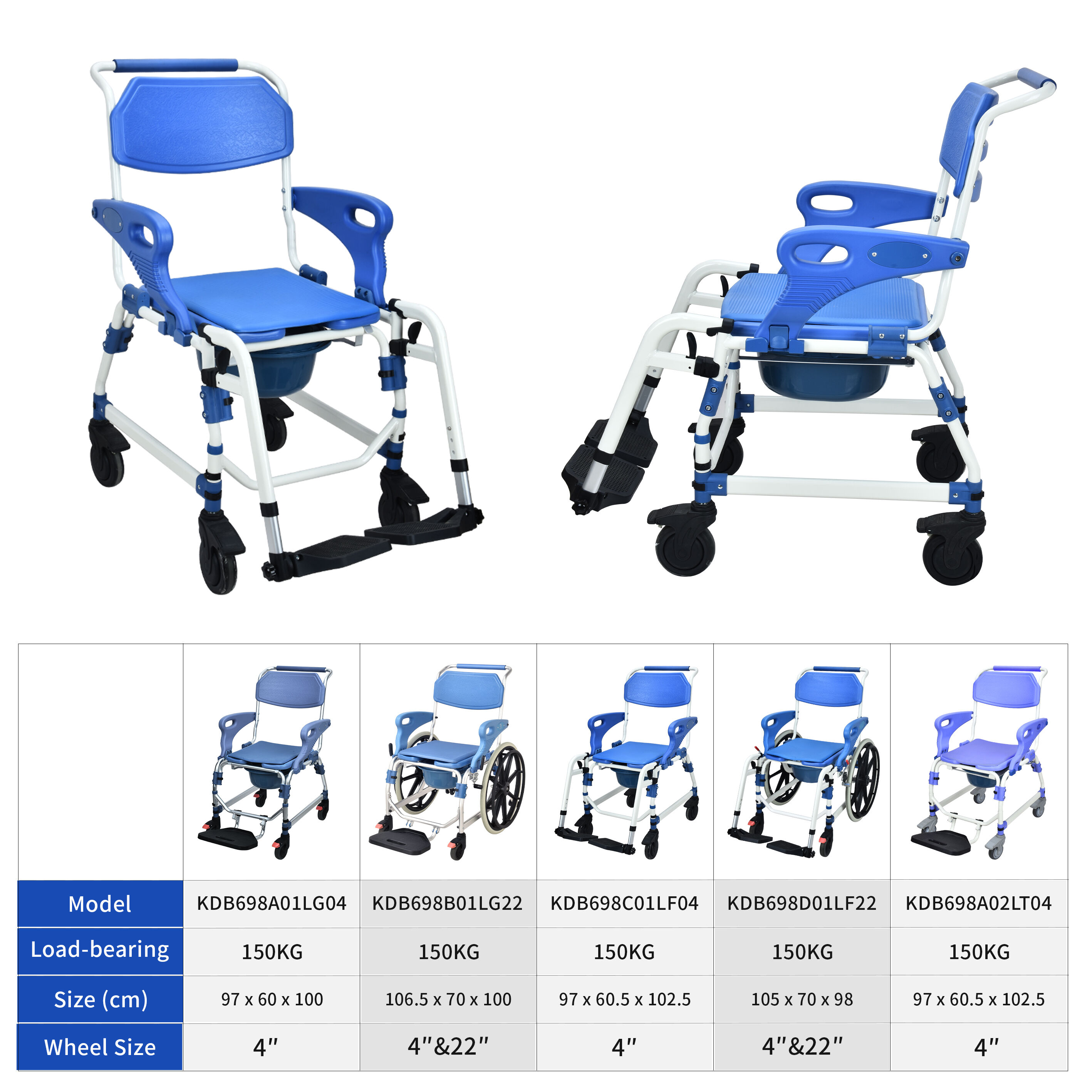 Ten mebel sanitarny o wysokiej wytrzymałości charakteryzuje się nadzwyczaj szerokim siedziskiem o szerokości 53 cm oraz poduszką z miękkiej pianki EVA przypominającej dotyk skóry, co czyni go idealnym wyborem dla pacjentów wymagających długotrwałego siedzenia. Jego rama aluminiowa odporna na korozję gwarantuje trwałość zarówno w suchych, jak i wilgotnych warunkach. Składane podłokietniki i podnóżki umożliwiają łatwe przenoszenie oraz kompaktowe przechowywanie. Mebel wyposażony jest w 4-calowe wodoodporne koła, które umożliwiają łatwe poruszanie się, nawet w wąskich korytarzach czy łazienkach. Uszczelnione wiadro sanitarnie zapobiega przedostawaniu się zapachu i wycieków, co czyni je idealnym rozwiązaniem dla szpitali, ośrodków rehabilitacyjnych i domów opieki.